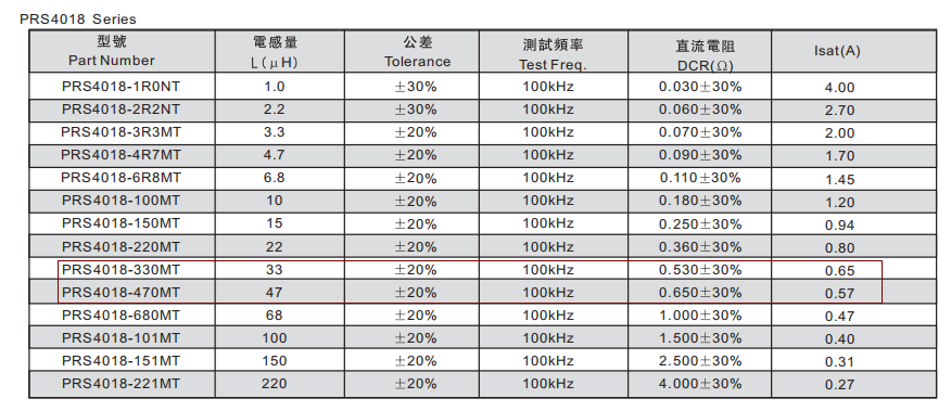 330電感是比較熱門的電感之一,其實(shí)我們通常把33uh功率電感叫做電感330。去年年底,我們南山電子也開始盤點(diǎn)庫存,分析元器件今年出貨情況,發(fā)現(xiàn)330電感銷量較大的是PRS4018-330MT,說到這款330電感,讓我想到前段時(shí)間,我們上海的一個(gè)客戶,一直都用PRS4018-330MT,也是因?yàn)槲覀?strong>330電感前陣子出貨較多,他們又上個(gè)月在已經(jīng)給他們備了貨情況下,新增30K的貨,因?yàn)樗麄兪墙K端,有好幾個(gè)技術(shù)人員,所以我們就讓他們自己根據(jù)規(guī)格書換適合的功率電感,他們選擇了相同規(guī)格的PRS4018-470MT,我們就發(fā)貨了,可是發(fā)貨后,他們采購跟我們這里溝通將PRS4018-470MT退了回來,原來他們一個(gè)新來的技術(shù)搞錯(cuò)了,PRS4018-470MT電流不夠,只能等我們調(diào)回原來的33uh功率電感。接下來南山半導(dǎo)體就來給你分析下原因,同時(shí)告訴大家如何選型: