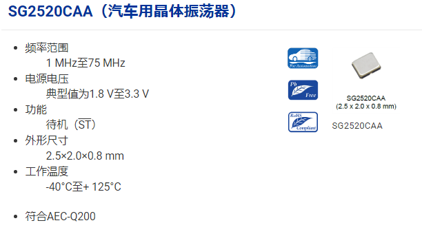 具有CMOS輸出,高速響應(yīng)特點(diǎn)的新型汽車級晶振SG2520CAA