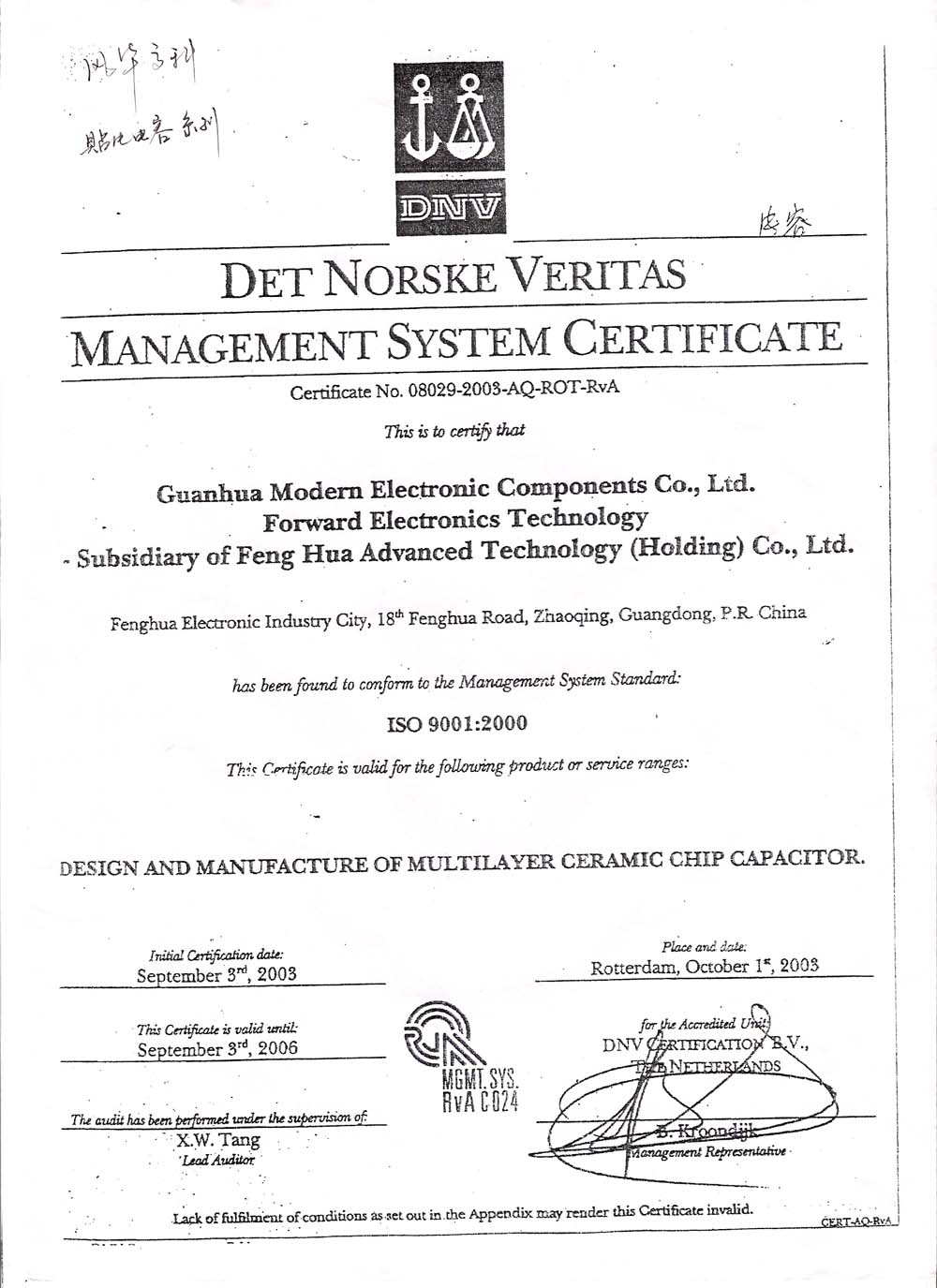 | 風(fēng)華高科是全球貼片被動(dòng)元器件排名八強(qiáng)的知名企業(yè) ,早在2000之前年就實(shí)現(xiàn)了貼片電容,貼片電阻,貼片電感,貼片二極管,貼片三極管,貼片磁珠,貼片磁珠排,貼片功率電感,貼片鉭電容,貼片晶振,貼片電解電容等系列產(chǎn)品的無鉛化和標(biāo)準(zhǔn)化,通過了ISO9000和ISO1400認(rèn)證。
