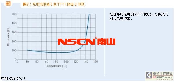 在這兩種情況下,充電電流的時(shí)間曲線幾乎相同。PTC陶瓷與固定電阻在電流特性方面的細(xì)微差別的產(chǎn)生原因是: