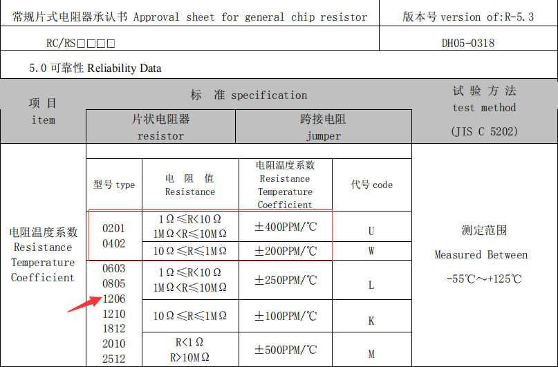 溫度系數(shù)也是一個重要的指標,0201貼片電阻和1206貼片電阻在測訂范圍內(nèi)溫度系數(shù)如上圖所示。