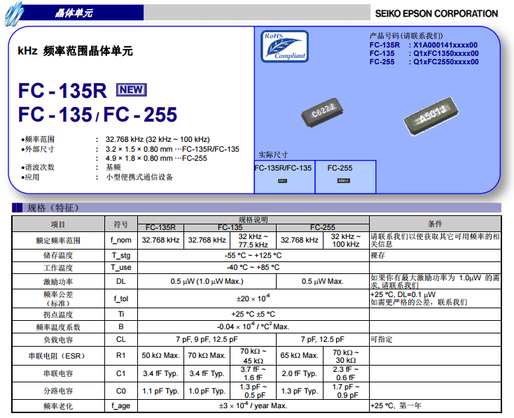 今天給大家來說說愛普生32.768khz貼片晶振中的一款老型號:FC-255。FC-255晶振應(yīng)用范圍很廣闊,比如多種電子消費類,手機應(yīng)用,藍(lán)牙多功能播放器,無線通訊產(chǎn)品,平板電腦等多個領(lǐng)域,FC-255因32.768KHZ晶體本身外觀款式多元化,所以適合多個產(chǎn)品應(yīng)用.并且滿足歐盟ROHS環(huán)保要求,晶體本身有重量輕,體積小,超薄型等多種優(yōu)勢,得到市場認(rèn)可。FC-255頻率范圍32kHz~100kHz,精度10PPM或20PPM或者指定,常用負(fù)載電容7PF,12.5PF,尺寸:4.9X1.8mm,FC-255可用于時鐘模塊,智能手機,全球定位系統(tǒng),因產(chǎn)品本身體積小,SMD編帶型,FC-255可應(yīng)用于高性能自動貼片焊接,FC-255外觀尺寸具有薄型表面貼片型石英晶體諧振器,特別適用于有小型化要求的市場領(lǐng)域,比如智能手機,無線藍(lán)牙,平板電腦等電子數(shù)碼產(chǎn)品。當(dāng)然FC-255逐漸被尺寸更小的FC-135替代是不爭的事實,下面南山電子就給大家分享下FC-255的規(guī)格書,以供大家選型參考: