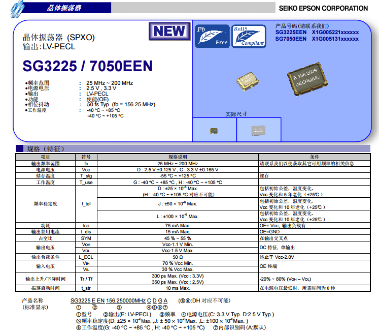 SG3225EEN是一款低抖動輸出類型LV-PECL的