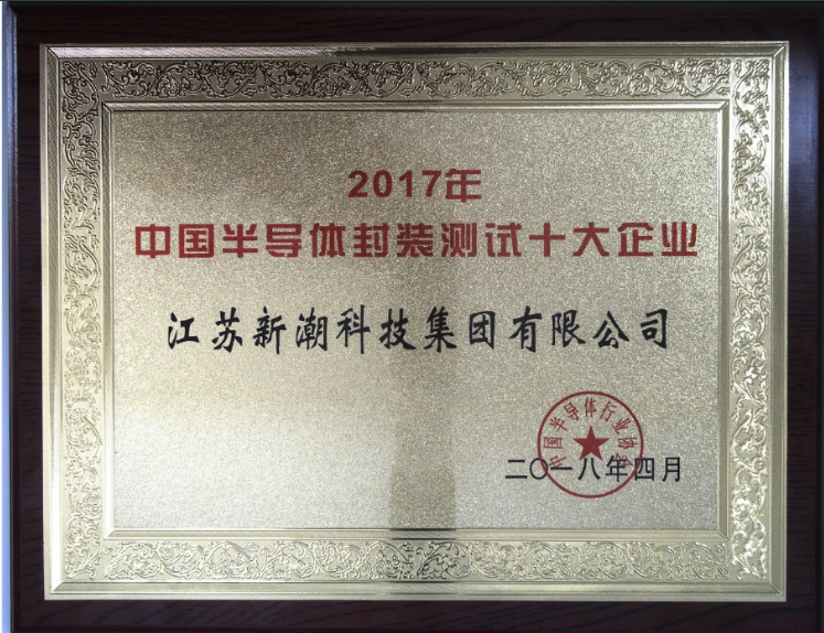 同時(shí),新潮集團(tuán)也再次獲得了“2017中國(guó)半導(dǎo)體封裝測(cè)試十大企業(yè)”的榮譽(yù)。