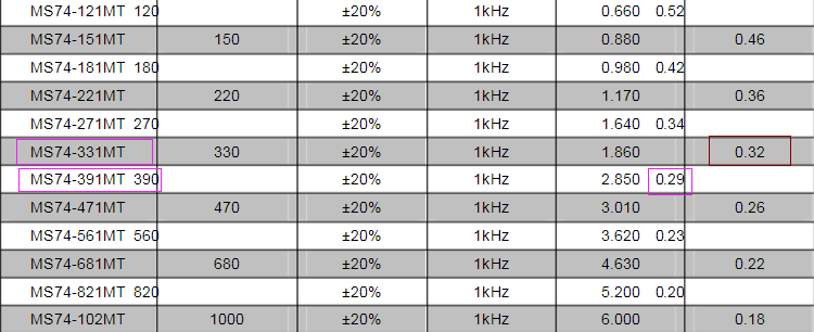 由此可以看出,MS74貼片功率電感相同磁芯材料,電感量越大,電流越小,330uh功率電感和390uh電感,一定要看飽和電流具數(shù)值,330uh電感雖然運用廣泛,但是還是要具體情況具體分析,不可隨便替換。