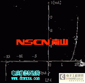 (7)V- I特性:發(fā)光二極管的電壓與電流的關(guān)系可用圖4表示。在正向電壓正小于某一值(叫閾值)時(shí),電流極小,不發(fā)光。當(dāng)電壓超過某一值后,正向電流隨電壓迅速增 加,發(fā)光。由V-I曲線可以得出發(fā)光管的正向電壓,反向電流及反向電壓等參數(shù)。正向的發(fā)光管反向漏電流IR<10μA以下。