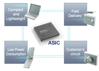 愛普生的標準單元芯片是半定制IC芯片,可將經(jīng)過優(yōu)化設計的內(nèi)部邏輯單元,諸如ROM和RAM的存儲器,CPU和模擬電路全部實現(xiàn)在同一芯片上。這樣,與單元陣列相比,標準單元可提供更多的設計靈活性,提供更多的功能和更高的集成度,并且可以作為針對用戶需求而優(yōu)化的系統(tǒng)LSI進行開發(fā)。這種優(yōu)化可以實現(xiàn)更多的功能和低功耗。